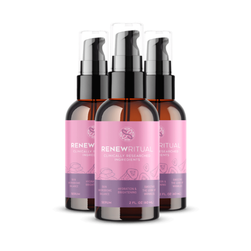 RenewRitual is an advanced topical skin serum formulated to support the skin’s natural microbiome, restore hydration, smooth out wrinkles, and brighten your complexion.